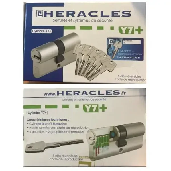 Le cylindre européen Y7C+ de la marque Héraclès est conçu pour offrir une sécurité renforcée. Doté d'un système sophistiqué comprenant six éléments de verrouillage, ce cylindre assure une protection inégalée contre les tentatives